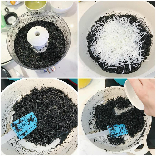 Màu đen: 10gr tinh than tre, 50ml nước,