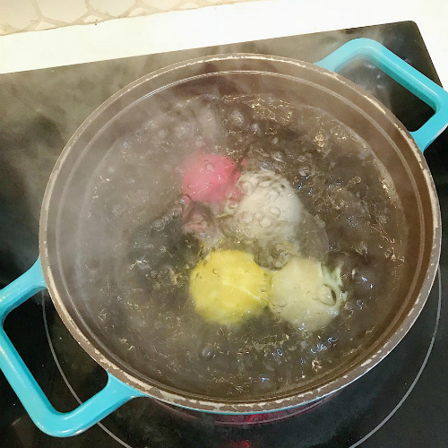 (Với vỏ có màu, giảm xuống 100ml nước sôi ở công thức chung).