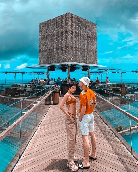 Bảo Anh hội ngộ Isaac ở chợ đêm. Nam ca sĩ cũng đang có chuyến nghỉ xả hơi vài ngày tại Bali, tham quan nhiều đểm đến nổi tiếng như đền thờ, đảo Nusa Penida…