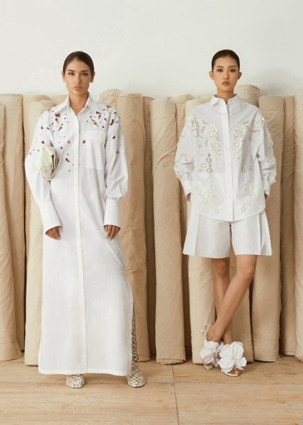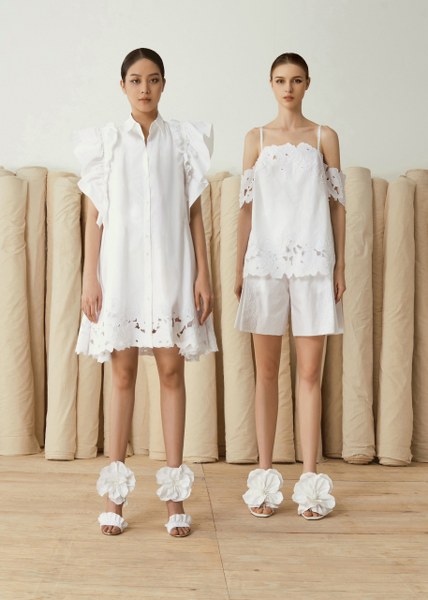 Thanh lịch, tao nhã là hai từ dùng để miêu tả các thiết kế trong BST Resort 2023. Khai thác gam màu đơn sắc muôn thuở, loạt trang phục dành cho mùa nghỉ dưỡng của nhà mốt Việt thể hiện sự mới lạ qua những cánh hoa uốn lượn trên nền vải thượng phẩm.