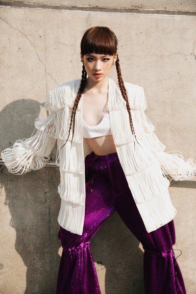 Khoác trên mình bộ trang phục của NTK Nguyễn Công Trí, Bảo Hà toát lên vẻ năng động trẻ trung nhưng cũng có phần tinh nghịch, mạnh mẽ.