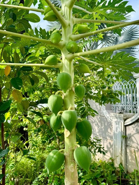 Nữ ca sĩ trồng nhiều loại rau củ như cải xanh, xà lách, rau muống, bầu, bí để cung cấp thực phẩm sạch cho gia đình. Khu vườn còn có trái cây theo mùa như na, đu đủ, mít...