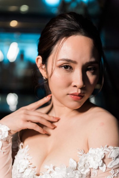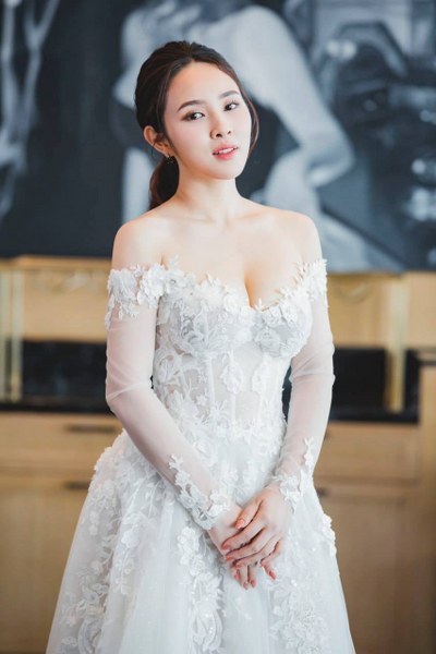 Bảo Trâm thon gọn trong chiếc váy cưới dòng cao cấp
