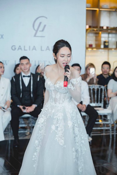 Bảo Trâm tỏa sáng trên sân khấu với váy trắng của nhà mốt Galia Lahav – Một thương hiệu váy cưới nổi tiếng thế giới được các sao Hollywood như Beyonce yêu thích.