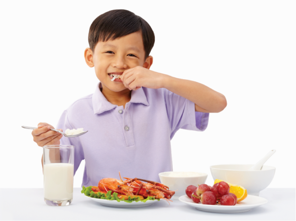 A. Dinh dưỡng: Cần áp dụng khẩu phần hợp lý về lượng và chất theo độ tuổi theo khuyến nghị của Viện Dinh dưỡng để đảm bảo đủ, đúng về chất, lượng và tần suất các bữa ăn, bao gồm 4 nhóm chất cơ bản như bột đường, đạm, béo, vitamin – khoáng chất. Ngoài ra, bộ đôi lợi khuẩn – chất xơ tiêu hóa cũng phát huy tối đa vai trò của mình trong việc giúp tăng cường hệ miễn dịch cho trẻ.