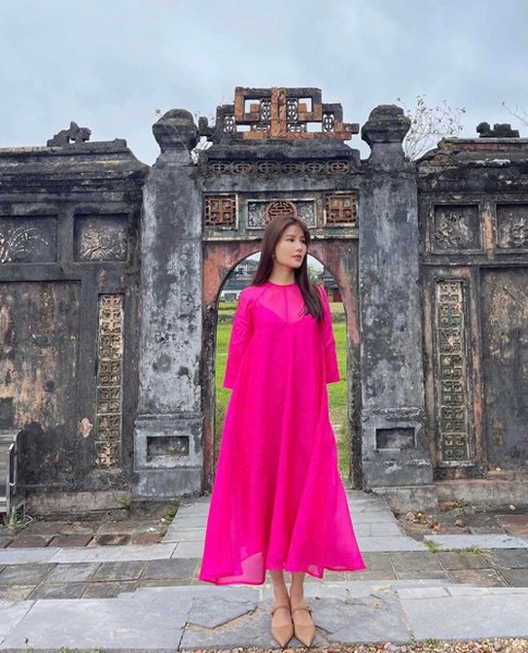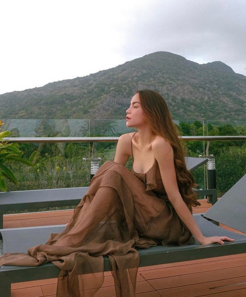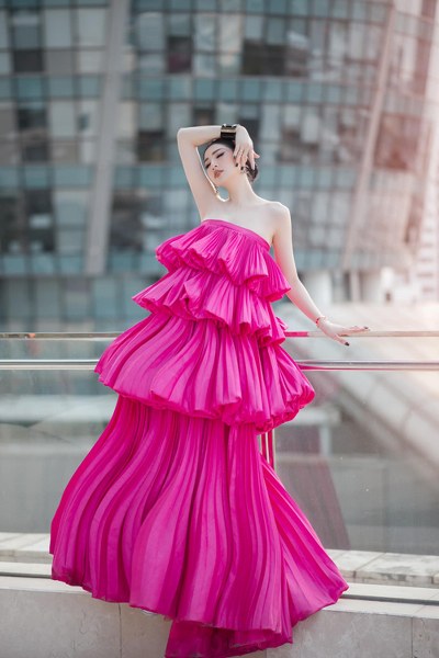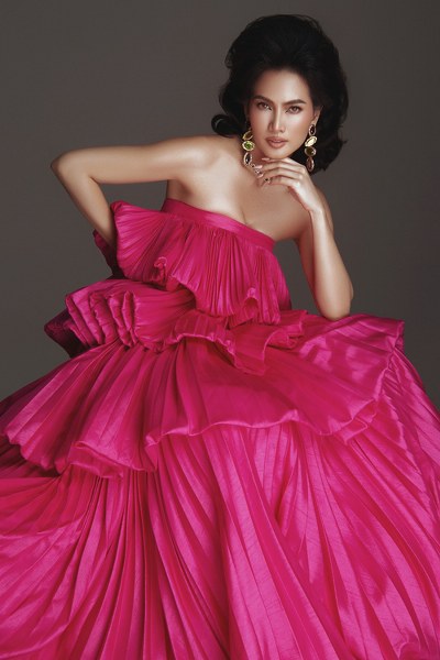 Siêu mẫu Anh Thư cũng chọn váy lụa hồng theo đúng khuynh hướng thời trang 2021/2022 của nhà mốt Việt để gây ấn tượng trong bộ ảnh mới.