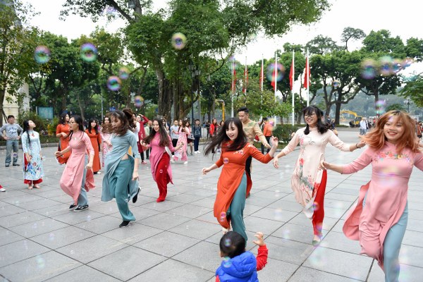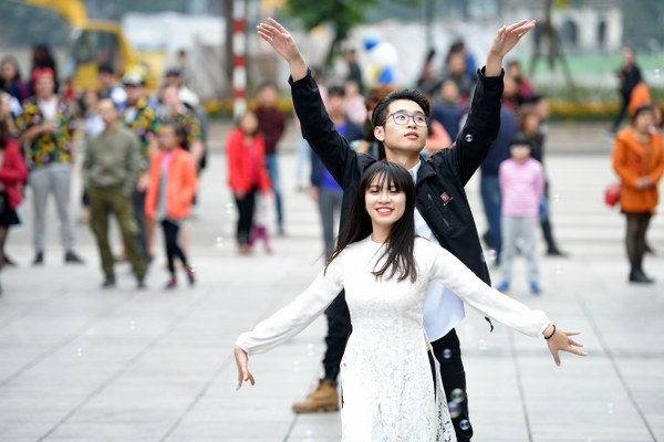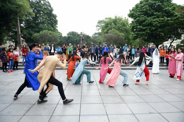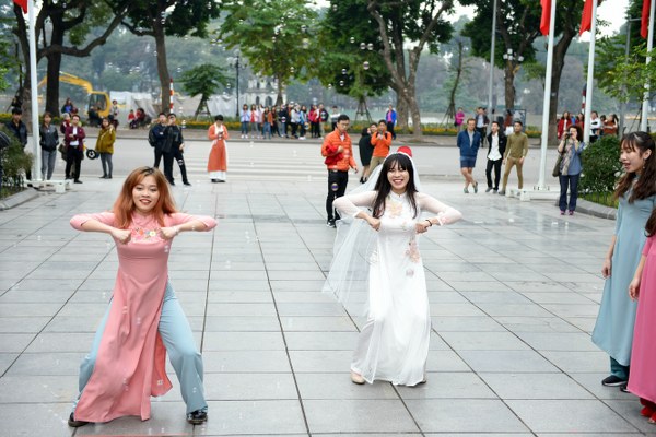 Sáng nay (ngày 6/1), 30 sinh viên đến từ CLB Dance của Đại học Ngoại thương đã cùng tụ họp tại Phố đi bộ (Hồ Hoàn Kiếm, Hà Nội) để cùng nhảy đón Xuân.