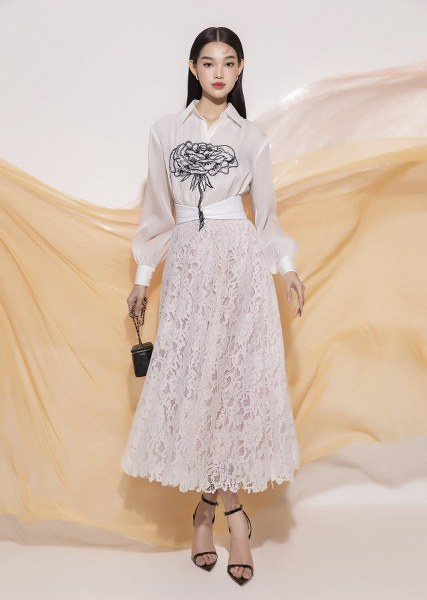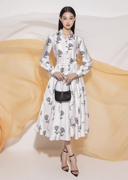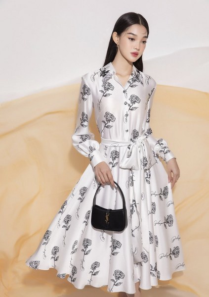 Ngắm nhìn nàng mẫu yêu kiều trong bộ đầm trắng ôm sát, đính họa tiết hoa dọc thân váy hay thanh lịch khi diện đầm sơ mi hoa hơi hướm cổ điển, người đối diện sẽ bị thu hút và muốn khám phá vẻ đẹp tâm hồn ẩn chứa bên trong.