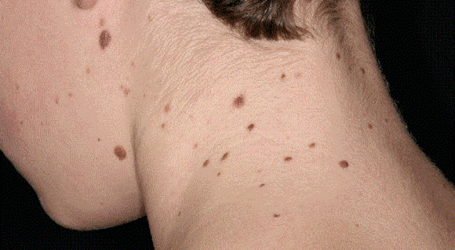 – Nốt ruồi không điển hình: Có 2 loại nuốt ruồi, nốt ruồi bình thường là những điểm nhỏ màu nâu xuất hiện trong vài chục năm đầu đời, chúng có ở gần như tất cả mọi người. Và nốt ruồi không điển hình còn được gọi là các vết chàm bất thường (dysplastic nevi).