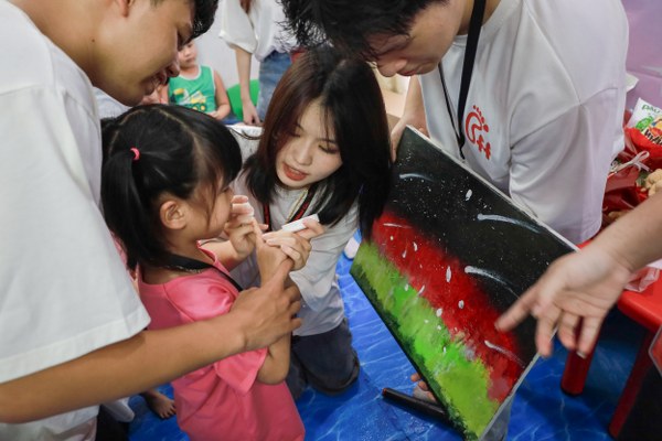 Thành viên Câu lạc bộ giúp các em vẽ tranh