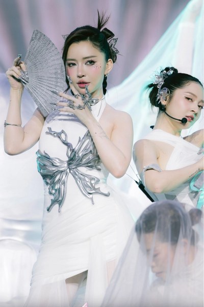 Khi chào sân trong tập đầu, ca sĩ thể hiện gu mặc phóng khoáng với thiết kế cắt xẻ, kết hợp gọng kính cách điệu.