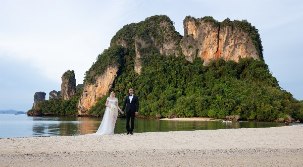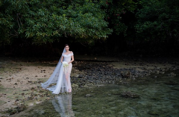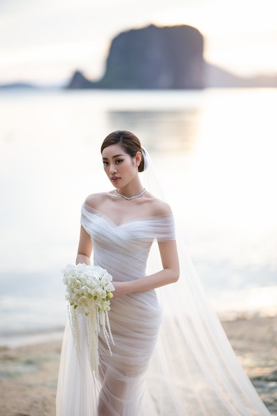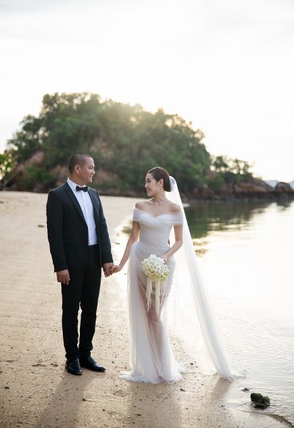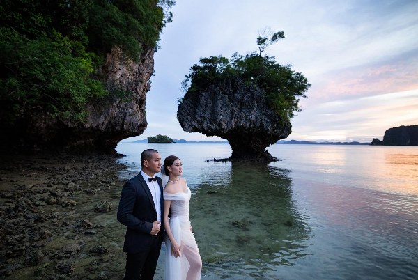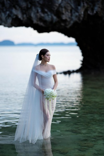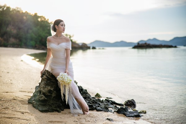 Mới đây, Khánh Vân chia sẻ bộ ảnh cưới thực hiện ở biển Krabi hồi tháng 9. "Chúng tôi đều thích biển nên chọn nơi đây để lưu giữ khoảnh khắc ý nghĩa", cô nói.