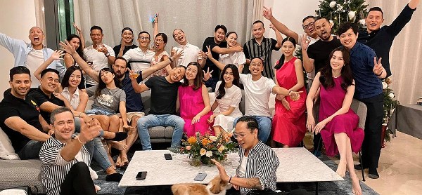 Justin Cohen (thứ hai từ ngoài vào, bên trái) xuất hiện trong một bữa tiệc có mặt vợ chồng Hoa hậu Đặng Thu Thảo - Nguyễn Trung Tín, vợ chồng Phillip Nguyễn - Linh Rin, Louis Nguyễn - Tăng Thanh Hà...