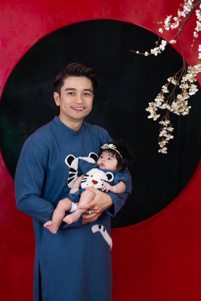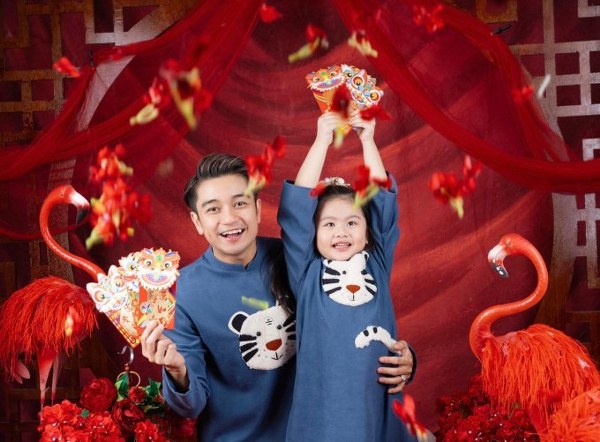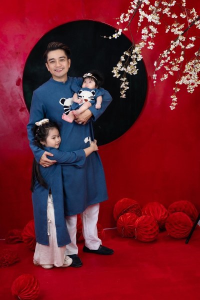 Diễn viên Vân Trang lần đầu khoe rõ mặt hai con gái Quinisha và Quianna trong bộ ảnh gia đình dịp Tết Nhâm Dần 2022.