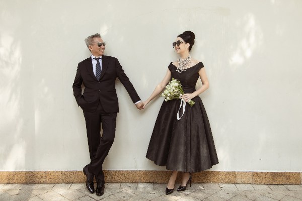 \"Nữ hoàng ảnh lịch\" thập niên 1990 Diễm My tình tứ sánh đôi ông xã Hà Tôn Đức xuống phố dạo chơi, chụp ảnh mừng sinh nhật thứ 59.