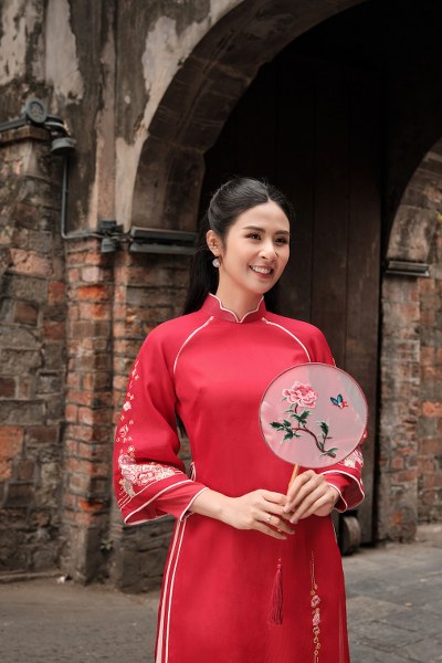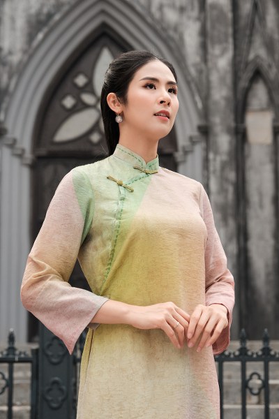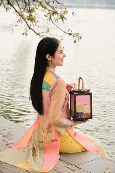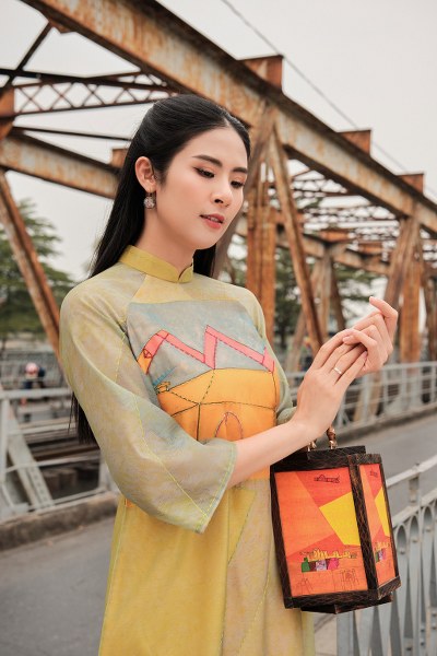 Mới đây, người đẹp còn thực hiện bộ ảnh dạo phố cùng Hoa hậu Đỗ Thị Hà để quảng bá cho bộ sưu tập áo dài "Nét Hà Thành", lấy cảm hứng từ bộ tranh Hà Nội của họa sĩ Lê Thiết Cương. Những nét vẽ tối giản đặc trưng trong tranh của họa sĩ nổi tiếng được chuyển thành ngôn ngữ thiết kế hiện đại trên tà áo dài. Bộ sưu tập nổi bật với những đường cắt sắc nét và cách phối màu độc đáo, khắc họa sinh động không gian Hà Nội - từ kiến trúc phố cổ đến nhịp sống đô thị.