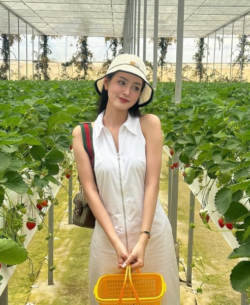 Người đẹp đang theo đuổi các dự án về nông nghiệp sạch nên thường xuyên ra vườn tìm hiểu và thu hoạch. Sinh ra, lớn lên ở nơi gắn liền nghề nông, cô cho biết chọn học ngành quản trị kinh doanh nông nghiệp vì muốn giúp bà con làm giàu từ nông phẩm, tạo hướng đi bền vững cho tương lai.