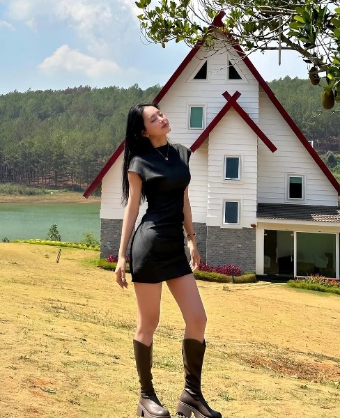 Phong cách thành thị với váy bodycon tối giản và bốt chunky.