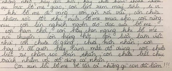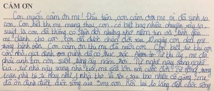 GV cho đề văn (in sẵn trên giấy A4 bìa cứng và HS viết luôn vào đó) đại loại: "Có những lời yêu thương chưa kịp sẻ chia, có những nỗi buồn chưa kịp giãi bày, những tâm sự sâu kín chưa dám nói…. với mẹ cha. Con hãy viết 1 bài văn để chia sẻ ….". HS lại viết. Ngay trong buổi họp, có nhiều PH vừa đọc vừa khóc trước những tâm sự của con….
