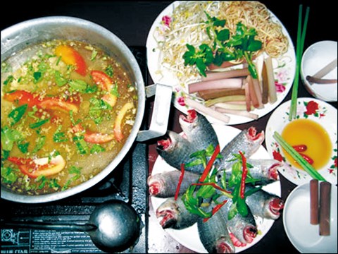 Canh cá diếc rau răm chữa bệnh trĩ kiết lỵ ra máu: cá diếc, cà chua, rau răm, thì là gừng, hành ngò gia vị vừa đủ nấu canh nhúng rau diếp ăn.