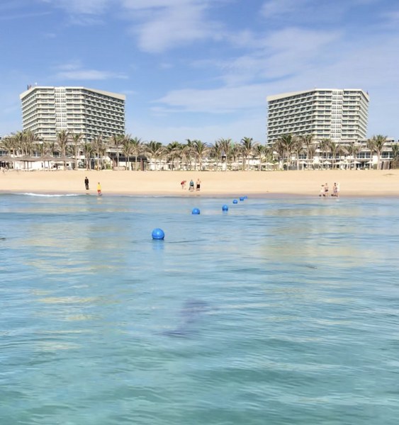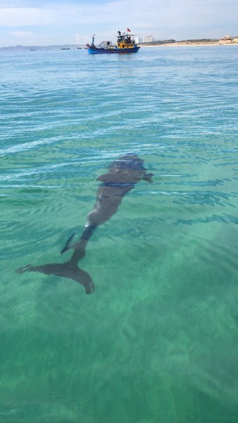 Chú cá heo đã bất ngờ xuất hiện gần bờ trong khu vực bãi tắm riêng của khu nghỉ dưỡng mới Alma Resort Cam Ranh