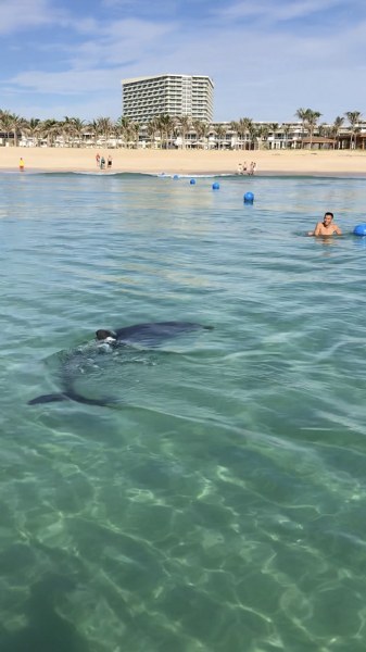 Anh Tân cho biết: "Khi khách của khu nghỉ dưỡng chúng tôi nhìn thấy một sinh vật lạ, họ đã hơi hoảng sợ và rời khỏi bãi tắm. Nhưng khi chúng tôi thông báo đó là một chú cá heo, họ đã bình tĩnh lại và tỏ ra thích thú, vì không phải dễ có cơ hội được bơi trong làn nước trong xanh cùng cá heo như thế".