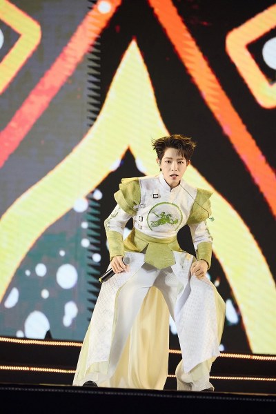 Anh biểu diễn tại sự kiện Kpop Super Concert trước hàng chục nghìn khán giả, tháng 11/2025 ở TPHCM. Trang phục do nhà thiết kế Hòa Nguyễn thực hiện với điểm nhấn là hình ảnh ngựa, cây tre đan xen. Bộ đồ từng giúp Đức Phúc tỏa sáng tại Intervision, anh tháo bỏ thắt lưng để tạo sự thoải mái.
