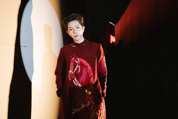 Ca sĩ Đức Phúc chọn trang phục truyền thống thêu hình ảnh ngựa - linh vật Bính Ngọ - khi du xuân, biểu diễn.