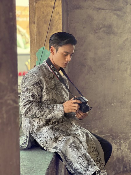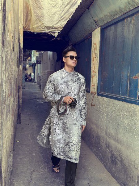 Nhân dịp Tết Giáp Thìn, Á vương Minh Khắc cũng diện áo dài khoe vẻ điển trai, nam tính khi dạo chơi, ngắm cảnh phố xá Sài Gòn những ngày cuối năm.