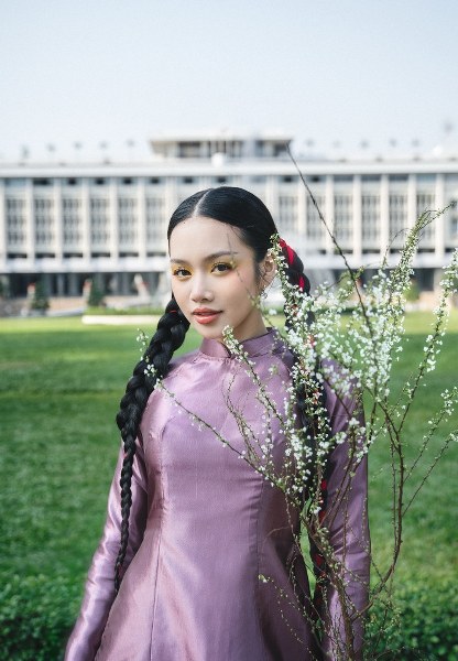 Ca sĩ Giana - Giọng ca 22 tuổi bước ra từ Vietnam Idol khoe sắc rạng rỡ với áo dài truyền thống kết hợp giày trượt patin trong Dinh Độc Lập. Á vương Minh Khắc cũng diện áo dài khoe vẻ điển trai, nam tính khi dạo chơi, ngắm cảnh phố xá Sài Gòn.