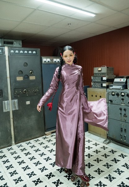 Cô phá cách, tự tin thể hiện cá tính của một đại diện gen Z, khi lần đầu kết hợp tà áo dài truyền thống cùng giày trượt roller skate (hay còn gọi là giày trượt patin).