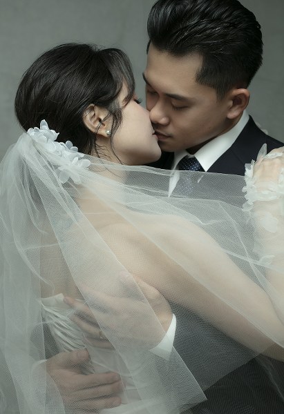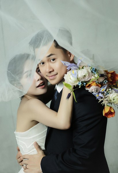 Ca sĩ Thái Trinh, 30 tuổi, cùng doanh nhân Thái Minh, 25 tuổi, tình tứ trong bộ ảnh cưới.