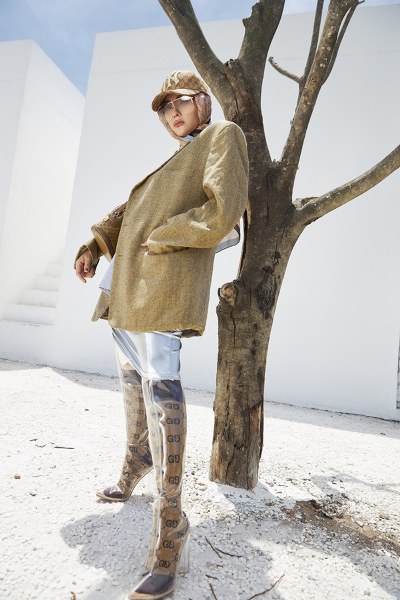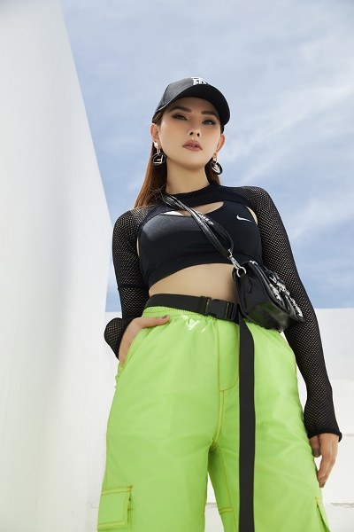 Ca sĩ Thu Thủy diện thiết kế từ chất liệu nhựa dẻo PVC oversize mang hơi hướng thập niên 80