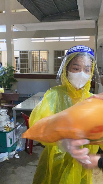 Á hậu Kiều Loan không ngại mưa gió, tích cực cùng ‘hội chị em’ tham gia phân phát lương thực, tổ chức nấu hàng nghìn phần cơm từ thiện.
