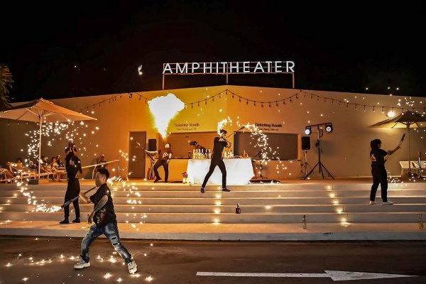 Những tín đồ của các chương trình biểu diễn nghệ thuật sẽ không bỏ qua màn biểu diễn tung hứng chai và múa lửa sẽ làm sôi động Chill’s Snack & Bar mang phong cách đường phố từ 18:45-19:05 hoặc tại nhà hàng biển Atlantis từ 19:30-19:50. Toàn bộ các khu vực phục vụ ẩm thực của khu nghỉ dưỡng sẽ tắt đèn từ 19:30-20:30 để hưởng ứng chiến dịch bảo vệ môi trường và tiết kiệm năng lượng. Sau chương trình tắt đèn sẽ là tiết mục vui cùng lửa trại tại bãi biển Alma diễn ra từ 20:30 đến đêm khuya.
