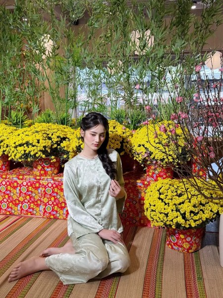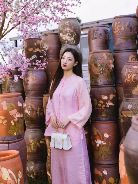 Năm nay, bên cạnh áo dài, áo bà ba trở thành xu hướng hot được nhiều thương hiệu địa phương lăng xê. Thiết kế vốn là trang phục của người lao động ở vùng nông thôn miền Nam, nay được nhiều người chọn mặc đi chơi Tết vì thoải mái, thuận tiện trong các hoạt động. Ngoài Midu và Tuyết Lan, Hoa hậu Lương Thùy Linh cũng sắm bộ áo màu hồng kết hợp túi Goyard.
