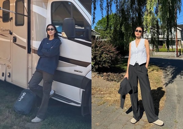 Trang phục đậm chất unisex được cô lựa chọn cho kỳ nghỉ.