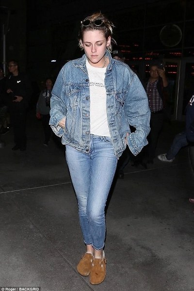 Kristen Stewart cũng theo đuổi xu hướng với một thiết kế màu nâu da bò lót lông nhân tạo.