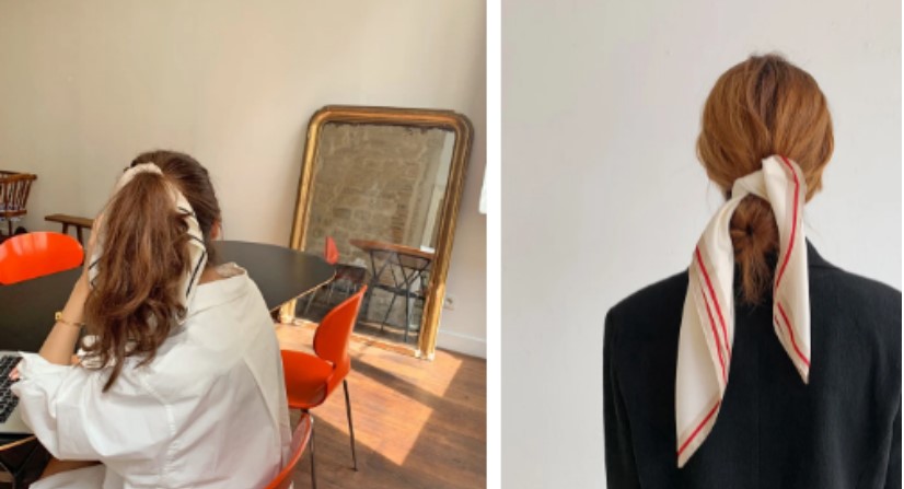 Chỉ cần cố định kiểu tóc búi hay tóc buộc thấp bằng một chiếc khăn xinh xắn, vẻ ngoài của chị em đã trở nên nổi bật và chanh sả hơn rất nhiều. Nên ưu tiên những mẫu khăn lụa mang tông màu trung tính, thiết kế đơn giản. Bật mí là khăn lụa không chỉ hợp diện đi làm, đi chơi mà còn lý tưởng để dành cho các chuyến du lịch biển.