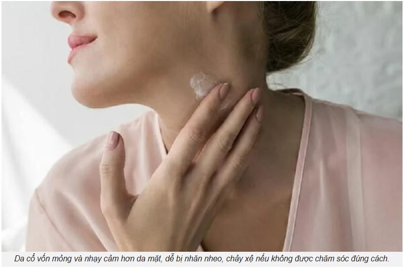 Da cổ vốn mỏng và nhạy cảm hơn da mặt, dễ bị nhăn nheo, chảy xệ nếu không được chăm sóc đúng cách.