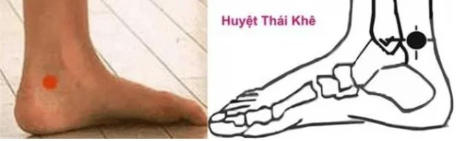 Dùng ngón tay cái của tay phải ấn nhẹ vào huyệt Thái khê chân trái và ngược lại, dùng lực sao cho cảm thấy có cảm giác là vừa. Tùy thời gian của bạn, có thể ấn từ 3-5 phút hoặc hơn.