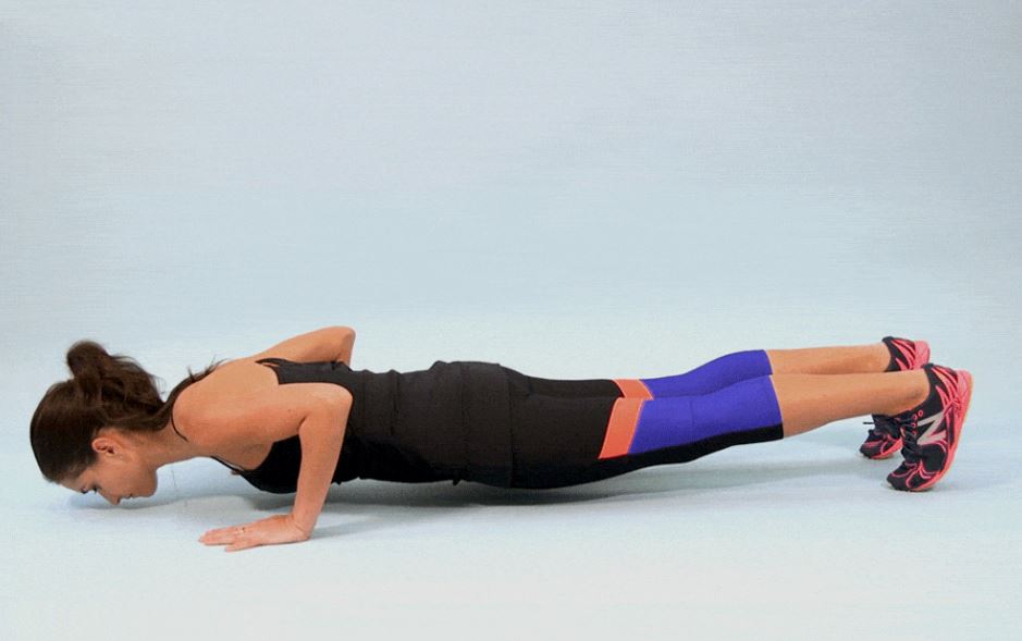 Từ từ chống đẩy và giữ cho đầu gối thẳng hoặc hạ hai gối để dễ thực hiện hơn.