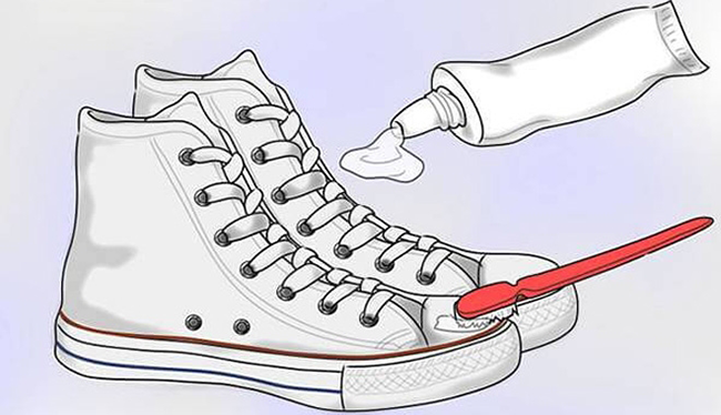 Chỉ cần một chút kem đánh răng và một chiếc bàn chải cũ là bạn có thể tẩy sạch vết ố giày rất dễ dàng. Tuy việc dùng bàn chải đánh răng sẽ tốn nhiều thời gian và công sức hơn, nhưng đầu bàn chải nhỏ hơn, có thể cọ sạch các khu vực ngóc ngách bị bẩn của đôi giày.
