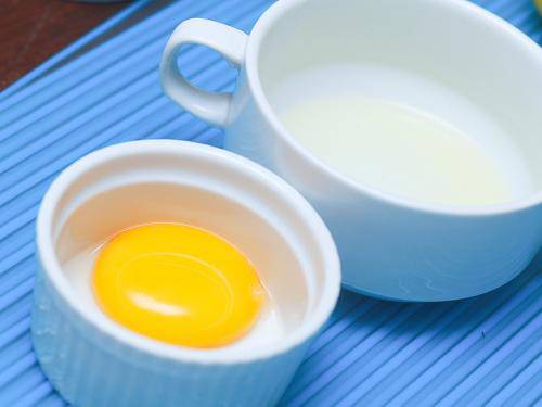 – Trứng gà sau khi mua về bạn đập ra 1 cái bát rồi bỏ vỏ, rồi cho thêm 50ml sữa tươi không đường rồi đánh cho tan đều đễn khi thu được hỗn hợp đồng nhất.