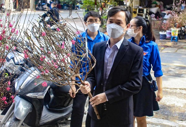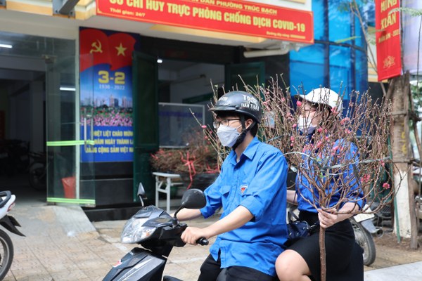 Ông Nguyễn Dân Huy, Chủ tịch UBND phường Trúc Bạch cho biết, với mong muốn mang bình an, sức khỏe đến với mỗi F0 đang điều trị tại nhà, phường thực hiện chương trình tặng mỗi gia đình F0 một cành đào để bà con yên tâm ở nhà vui Xuân đón Tết.