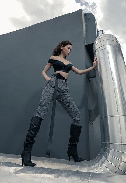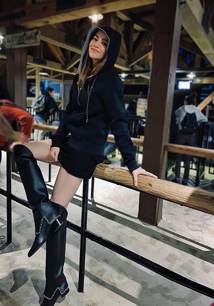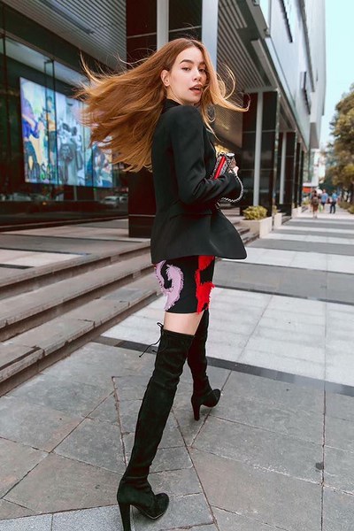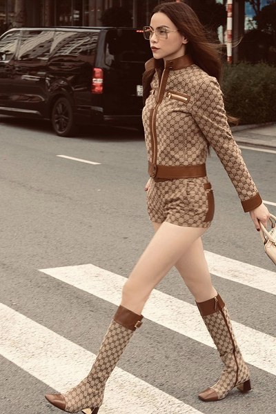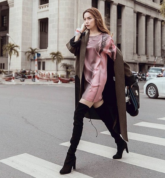 Công thức phối đồ ton-sur-ton được Hồ Ngọc Hà áp dụng hiệu quả khi chọn bốt cao cổ để mix-match trang phục đa phong cách.