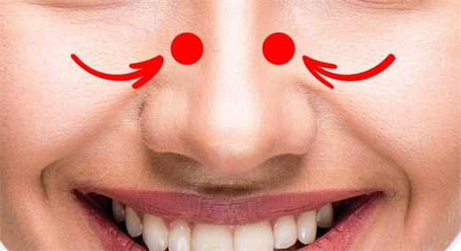 Điểm giữa hai đầu lông mày còn được gọi là ấn đường. Massage tại vị trí này nhẹ nhàng nhưng dứt khoát, trong vòng 1 phút, sẽ tác động đến niêm mạc mũi, ngăn ngừa khô mũi và phòng ngừa viêm xoang. Ngoài ra, động tác này cũng giúp giảm áp lực ở xoang trán.