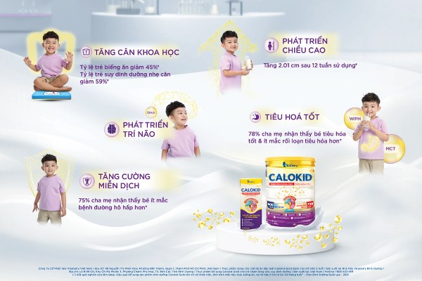 Kết quả công bố cho thấy, bổ sung Calokid Gold vào chế độ ăn hàng ngày, trẻ tăng cân, tăng chiều cao sau 4 tuần và tiếp tục cải thiện rõ rệt cân nặng, chiều cao sau 3 tháng. Tỷ lệ biếng ăn giảm 45% và có đến 78% cha mẹ nhận thấy bé tiêu hóa tốt hơn, ít mắc rối loạn tiêu hóa hơn.