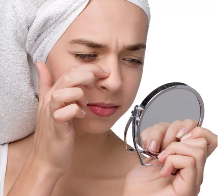 Mụn đầu đen xuất hiện chủ yếu ở 2 bên cánh mũi và lan ra vùng má. Điều đó khiến cho làn da trở nên sần sùi và kém sắc.