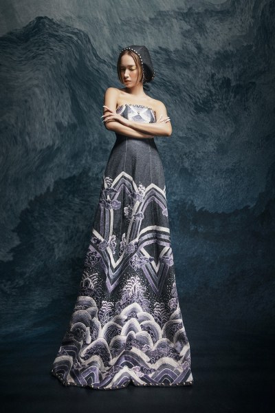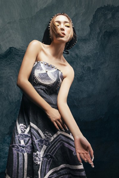 "Nước đầu nguồn" lấy cảm hứng từ họa tiết thủy ba (sóng nước) trên trang phục cổ của Việt Nam thế kỷ 19.